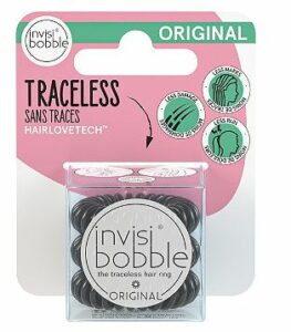 The secret of the ORIGINAL Invisibobble lies in its spiral shape. Because the Invisibobble distributes pressure evenly around your ponytail, you get a strong and comfortable fit. The Invisibobble ORIGINAL leaves no traces in your hair and won’t yank out hair when you remove it. It’s also waterproof, so you can safely wear it in the shower or pool.